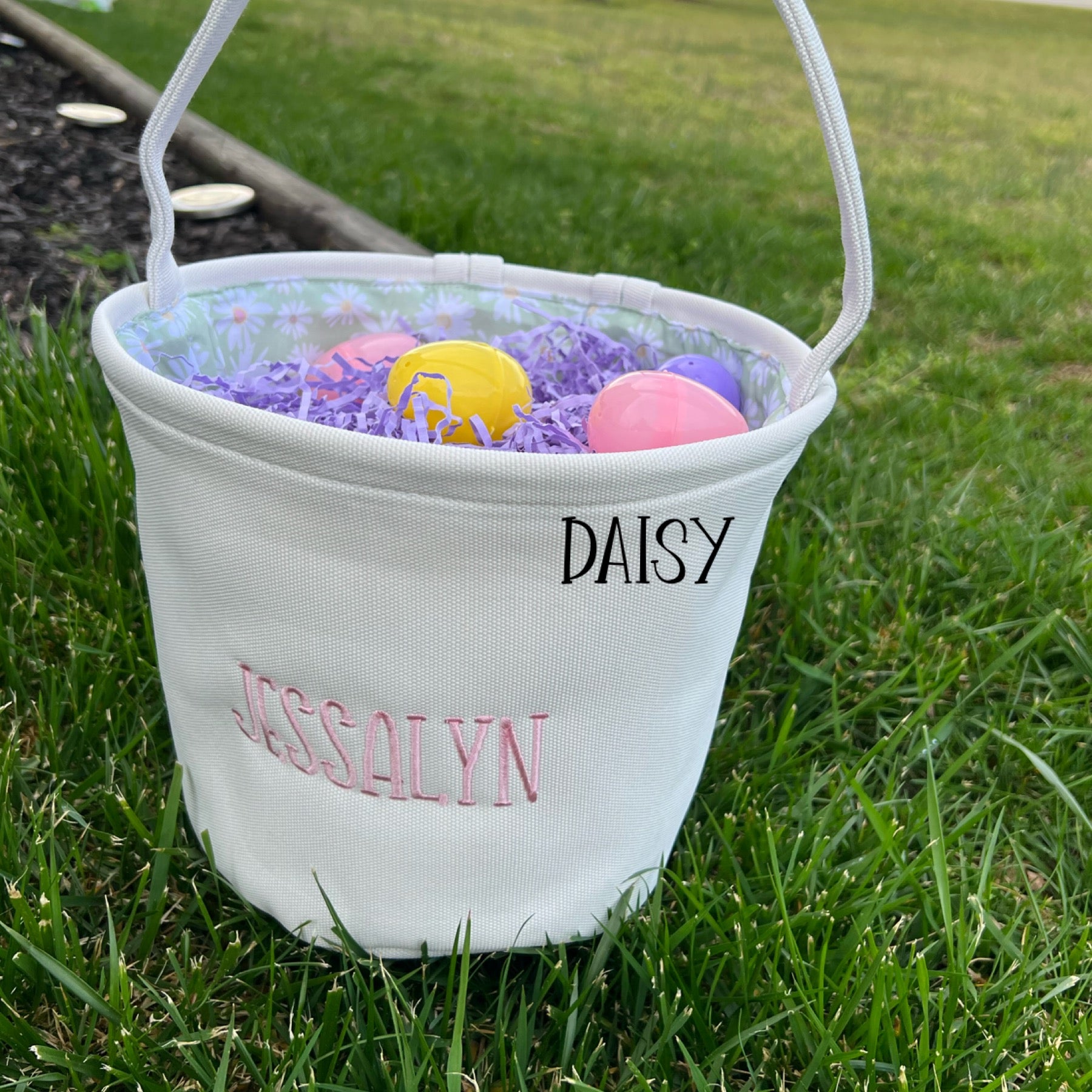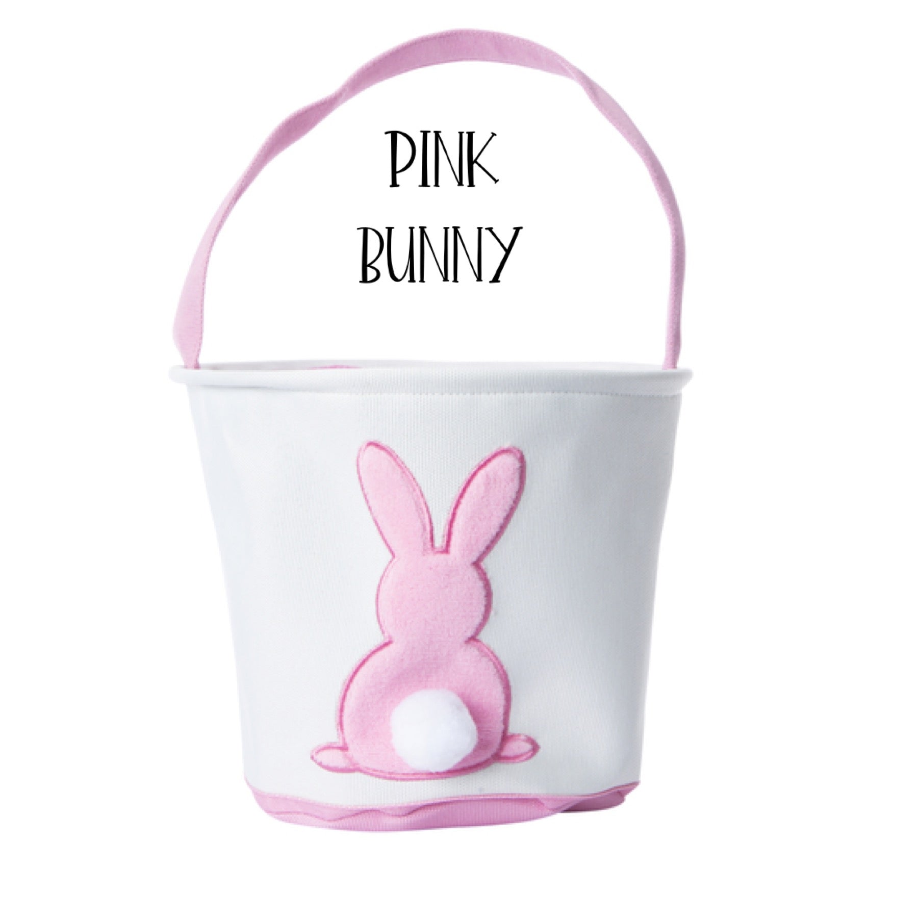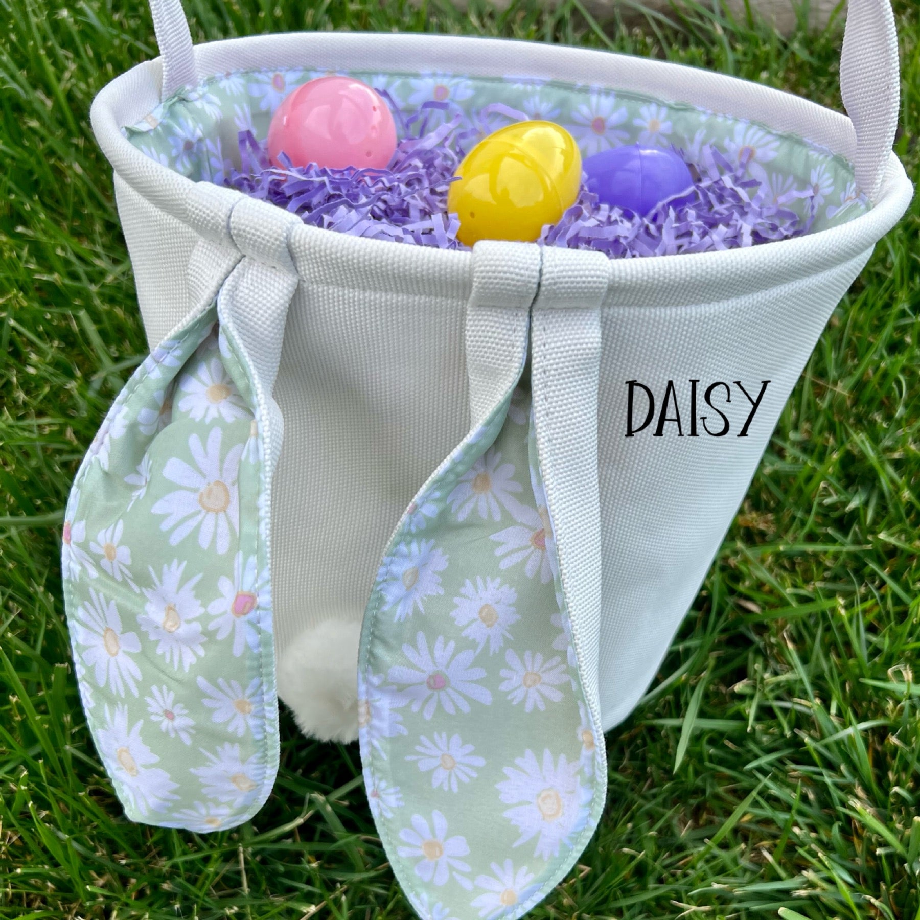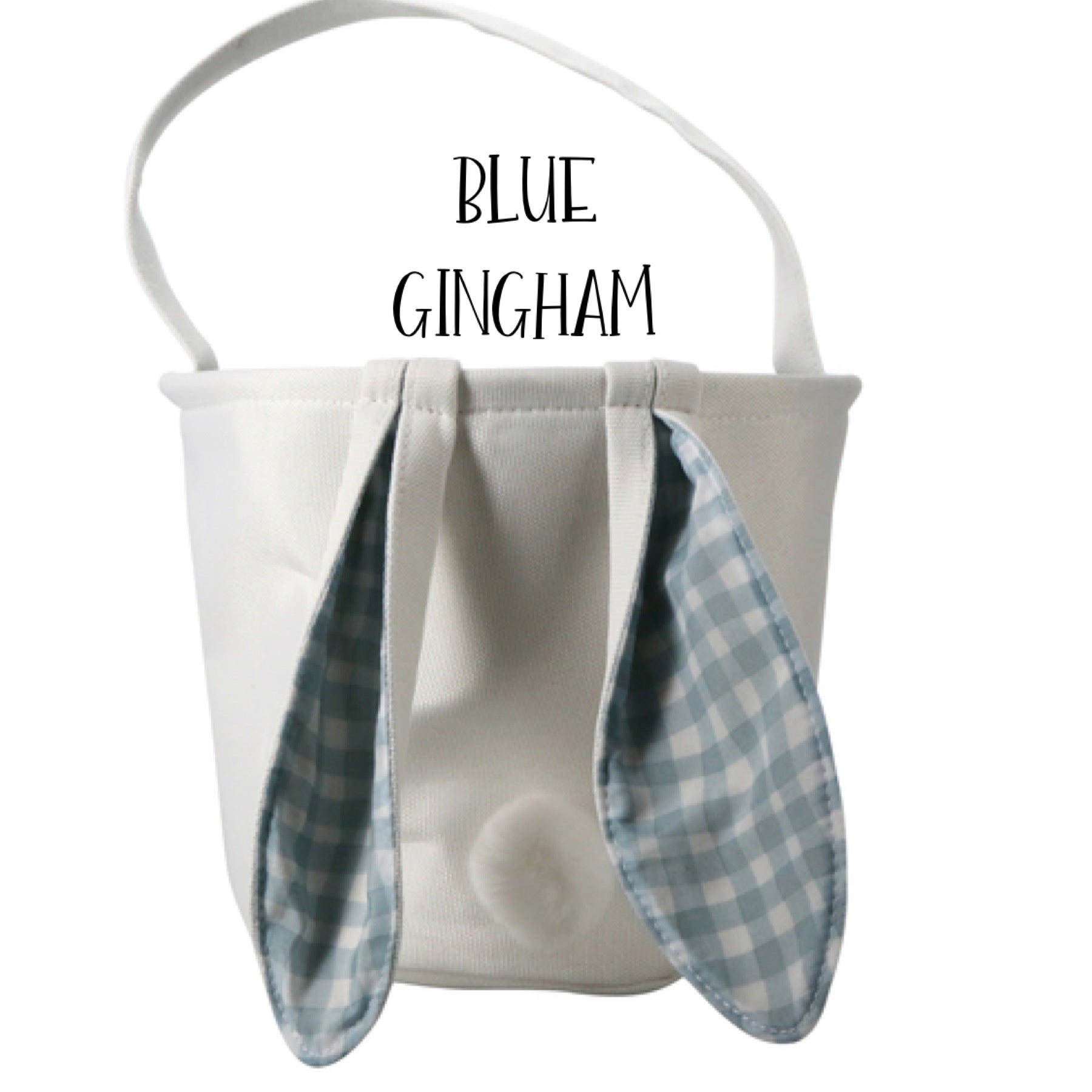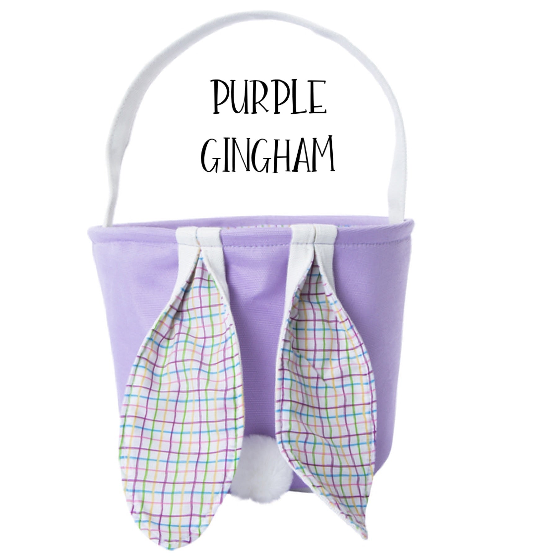 🐰 The blue gingham, purple gingham and daisy baskets will be embroidered on the front and they have ears and a tail on the back side