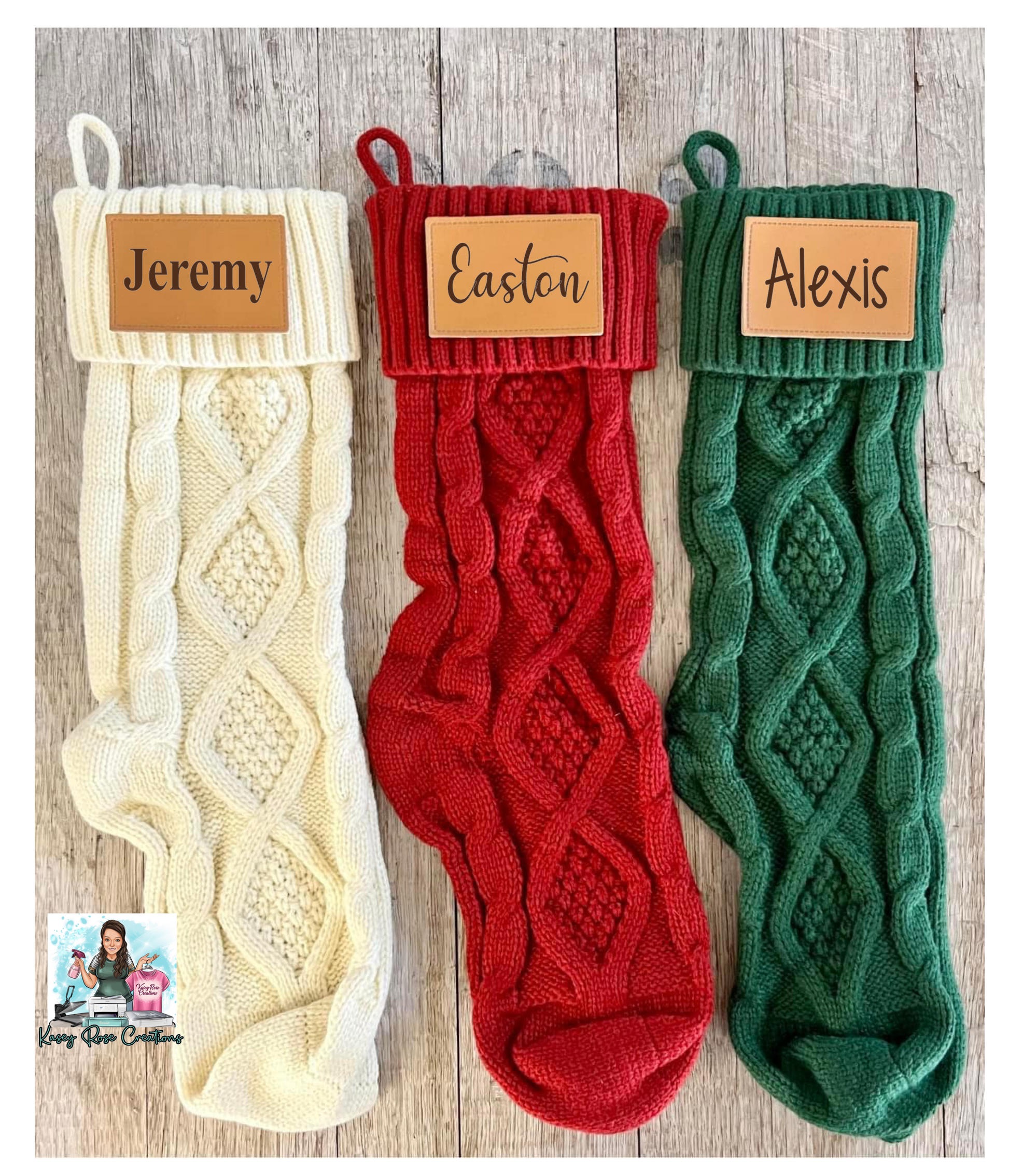 The cutest stockings ever! Your choice of font (1) (2) (3), choice of color - red, ivory or green.