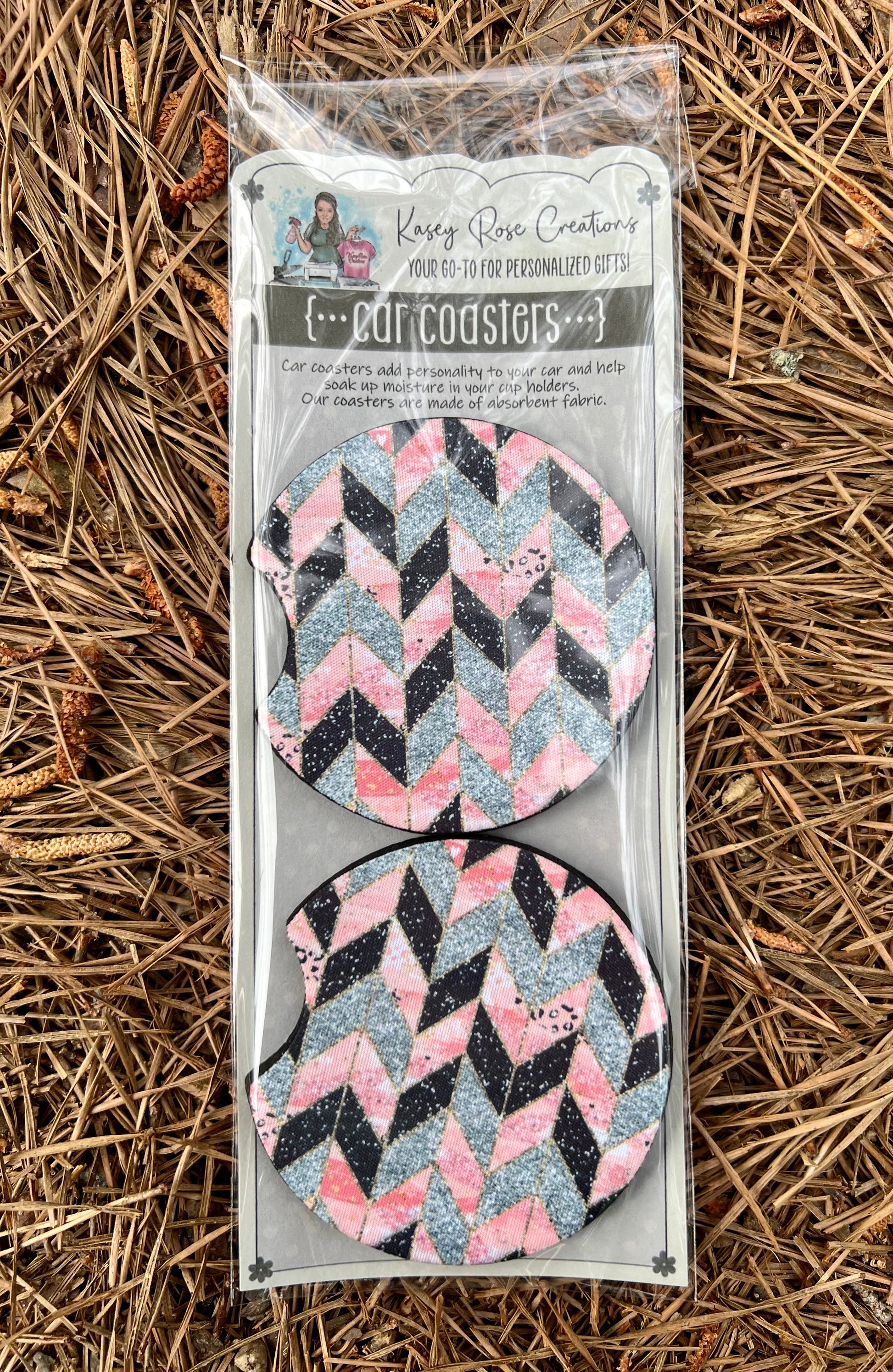 Our coasters are made of thick antibacterial neoprene that is perfect for soaking up any condensation your cups may have while sitting in your cup holder