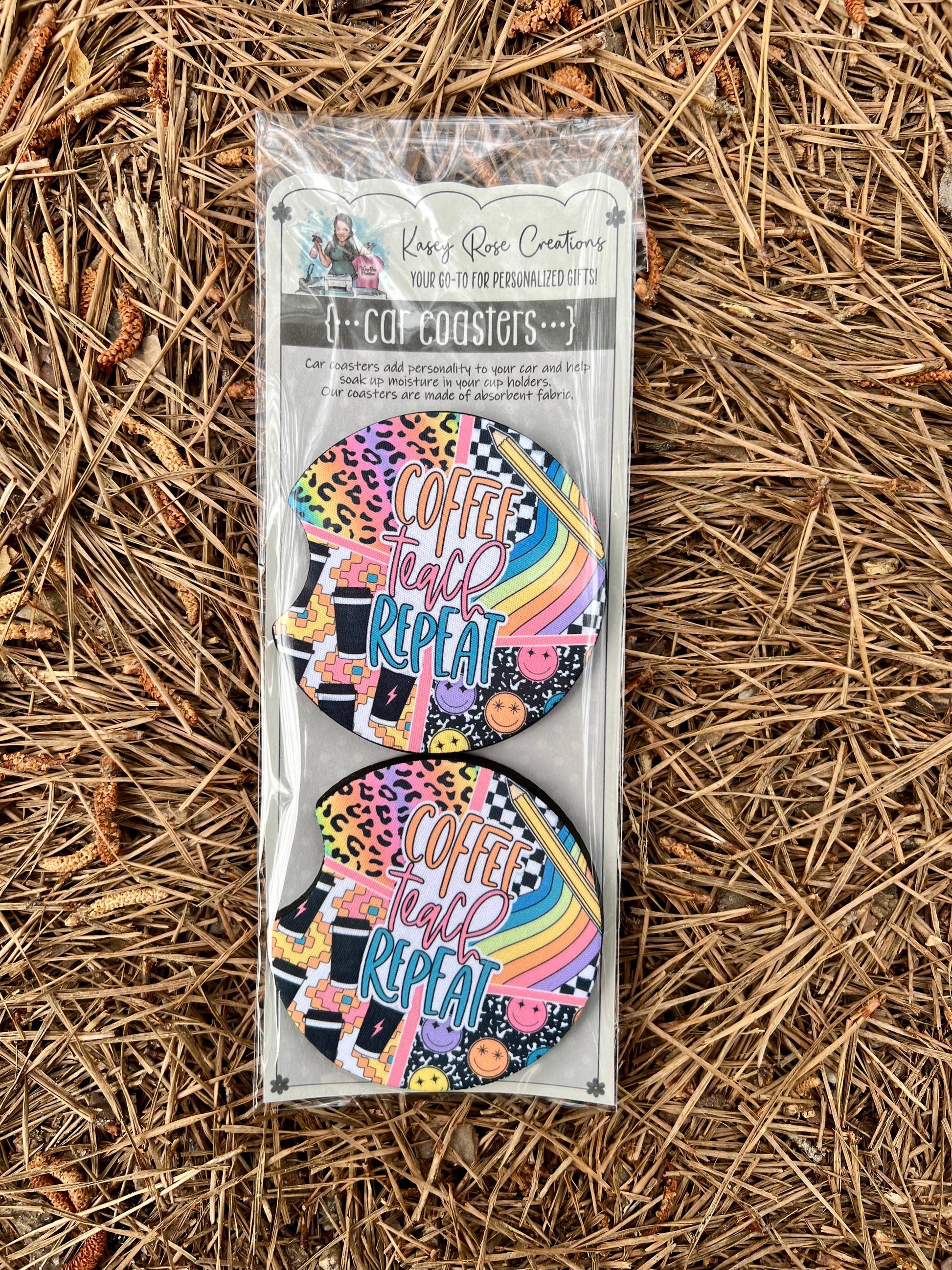 Our coasters are made of thick antibacterial neoprene that is perfect for soaking up any condensation your cups may have while sitting in your cup holder