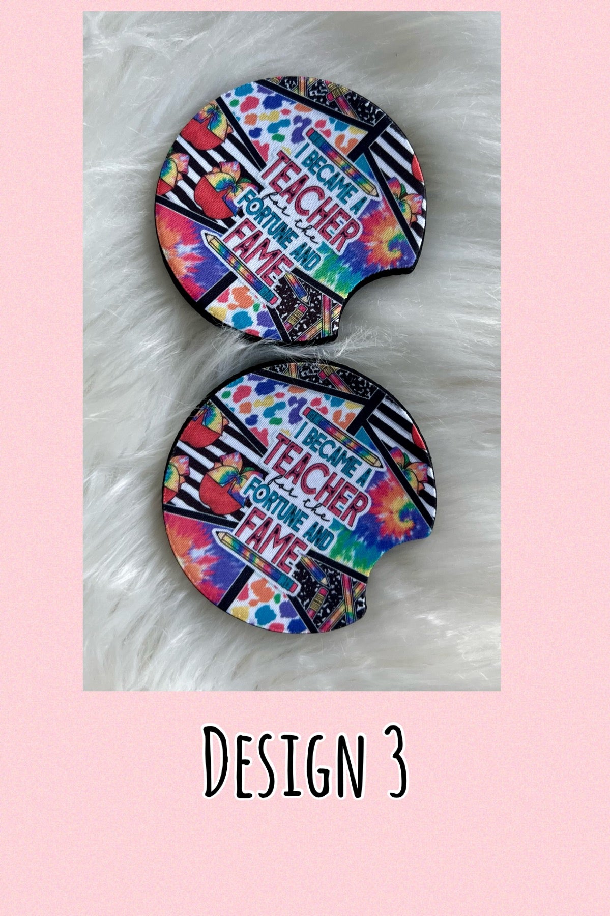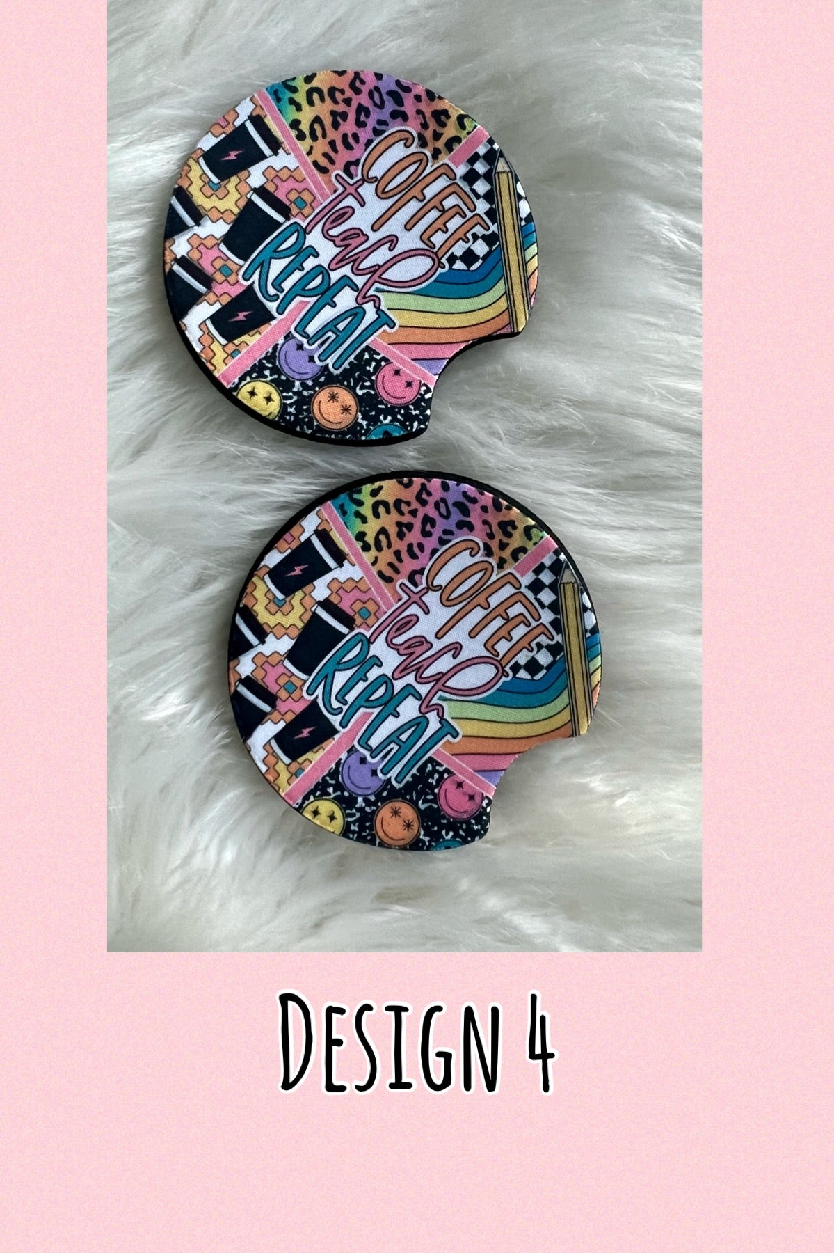 Our coasters are made of thick antibacterial neoprene that is perfect for soaking up any condensation your cups may have while sitting in your cup holder
