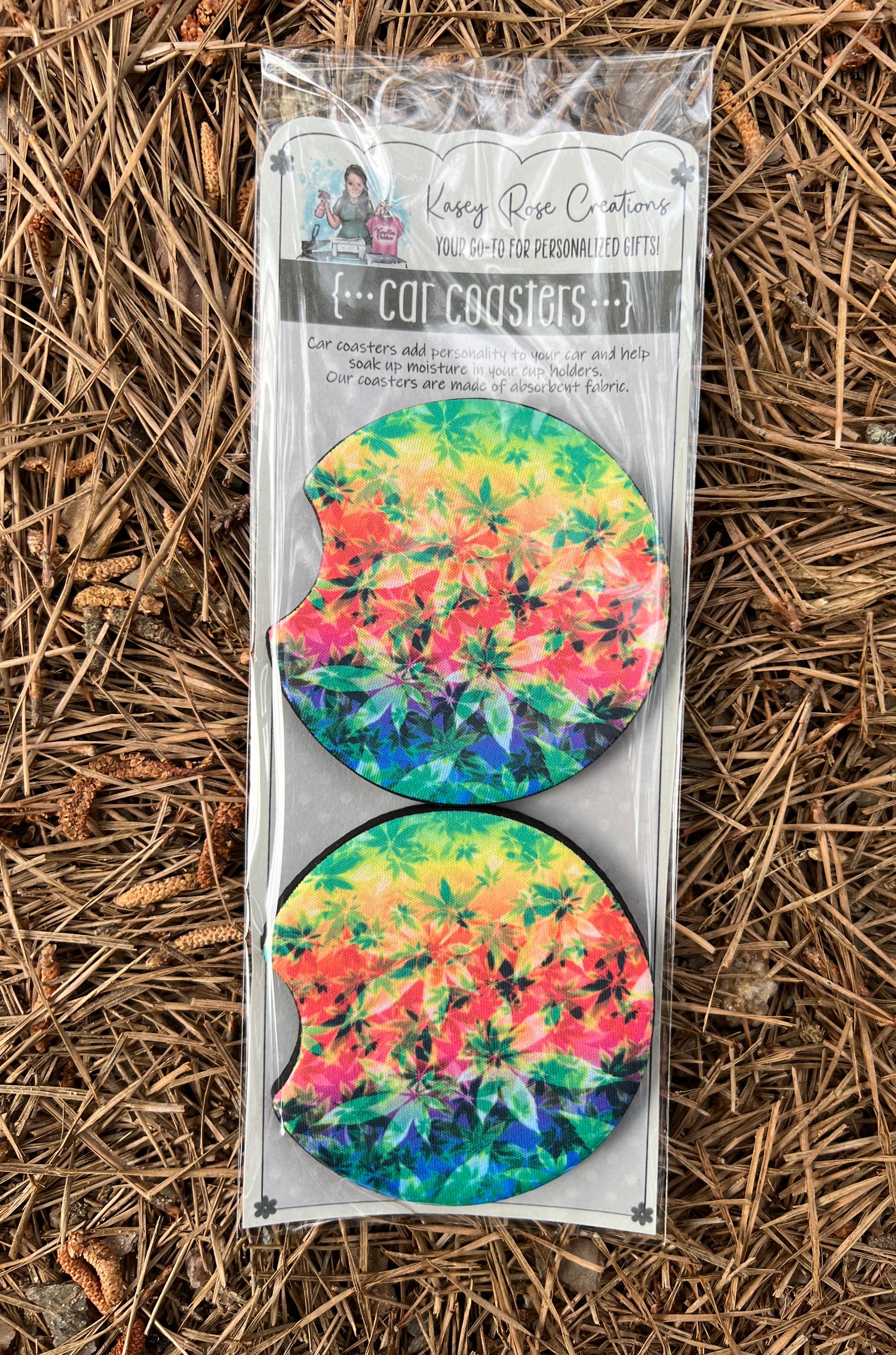 Our coasters are made of thick antibacterial neoprene that is perfect for soaking up any condensation your cups may have while sitting in your cup holder